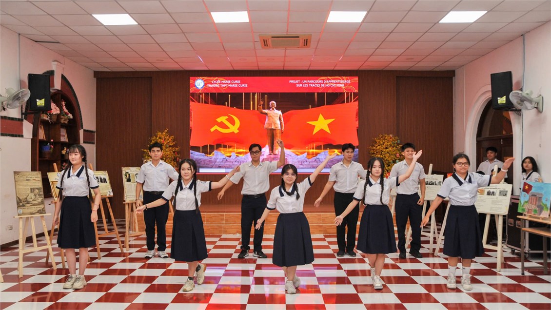 Trong không gian thân quen của Hội trường Trường THPT Marie Curie, một hành trình học tập đặc biệt đã được mở ra - nơi ngôn ngữ trở thành chiếc cầu nối đưa học sinh trở về với những dấu mốc ý nghĩa trong cuộc đời Chủ tịch Hồ Chí Minh.