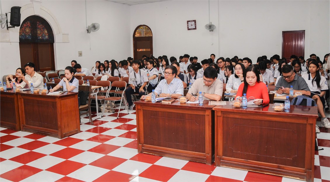 Buổi thao giảng vinh dự đón tiếp Ban Giám hiệu nhà trường cùng quý thầy cô đến từ Trường THPT chuyên Lê Hồng Phong, THPT Nguyễn Thị Minh Khai và THPT Gia Định đến dự giờ.