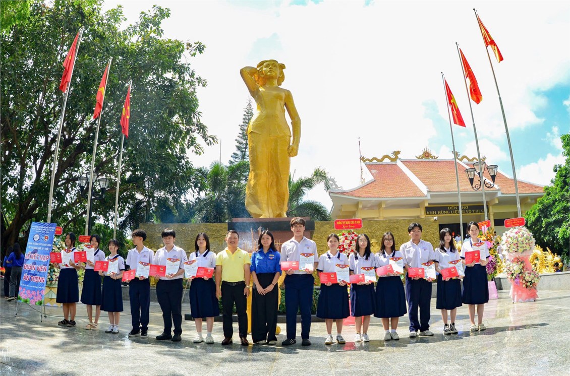 Tại công viên Tượng đài, Nhà lưu niệm Anh hùng liệt sĩ Võ Thị Sáu (xã Đất Đỏ, TP.HCM), đoàn đã trang trọng tổ chức lễ dâng hoa, dâng hương tưởng nhớ các Anh hùng liệt sĩ và Anh hùng Lực lượng vũ trang nhân dân Võ Thị Sáu. Trong không gian thiêng liêng, các em học sinh được lắng nghe thuyết minh, tìm hiểu về cuộc đời và tinh thần bất khuất của người nữ anh hùng dân tộc. Đặc biệt, Lễ kết nạp Đoàn cho 17 học sinh được tổ chức tại đây đã trở thành dấu ấn sâu sắc, góp phần hun đúc lý tưởng sống, khơi dậy niềm tự hào và trách nhiệm của tuổi trẻ Marie Curie.